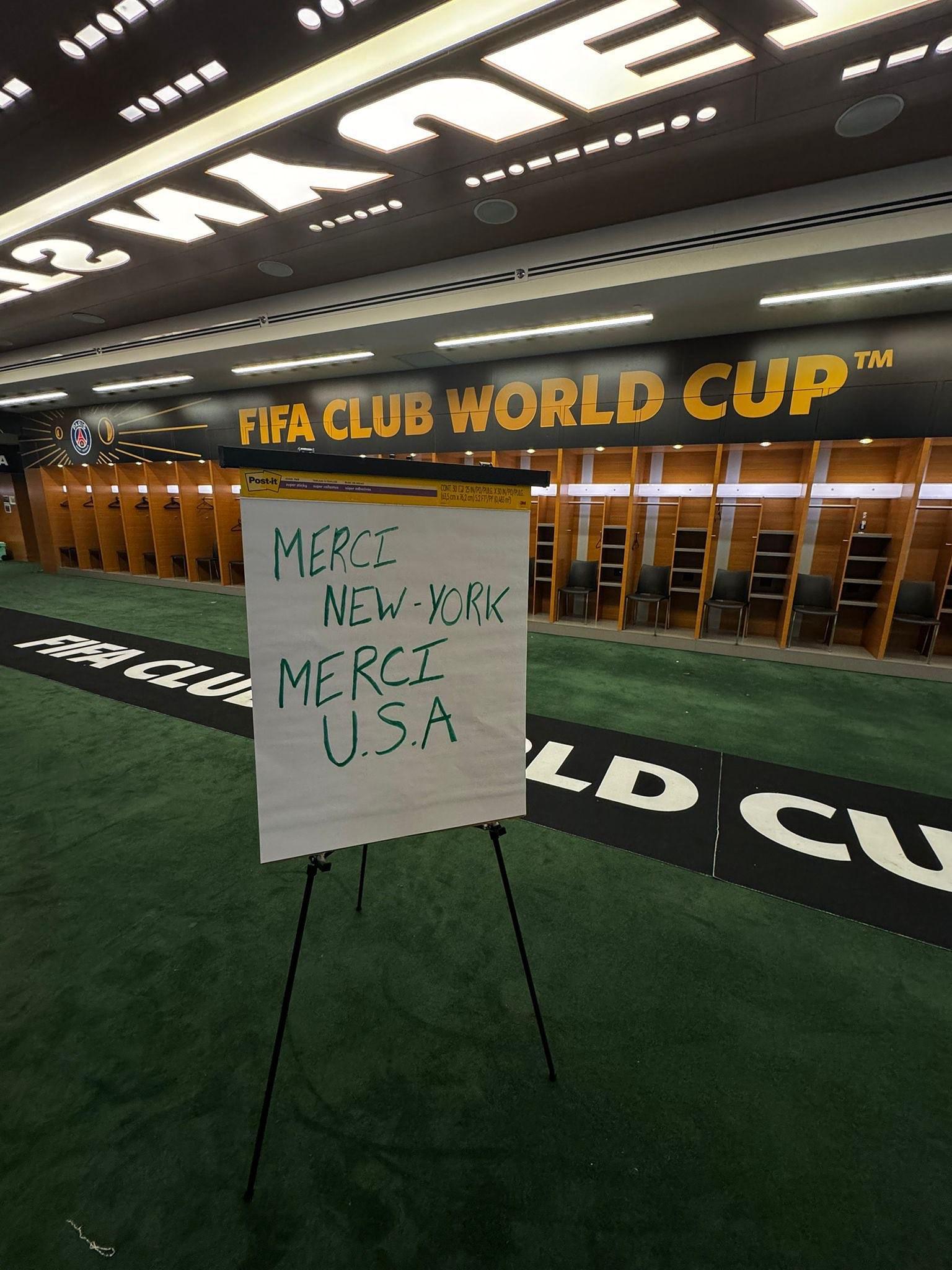 世俱杯决赛,巴黎圣日耳曼0-3不敌切尔西错失冠军。在比赛结束以后,巴黎圣日耳曼的球员及工作人员们将更衣室收拾完毕后,在展板上写下“感谢纽约,感谢美国(Thank you New York, thank you United States )”的字样,以表达对这座城市和这个国家的感谢。
